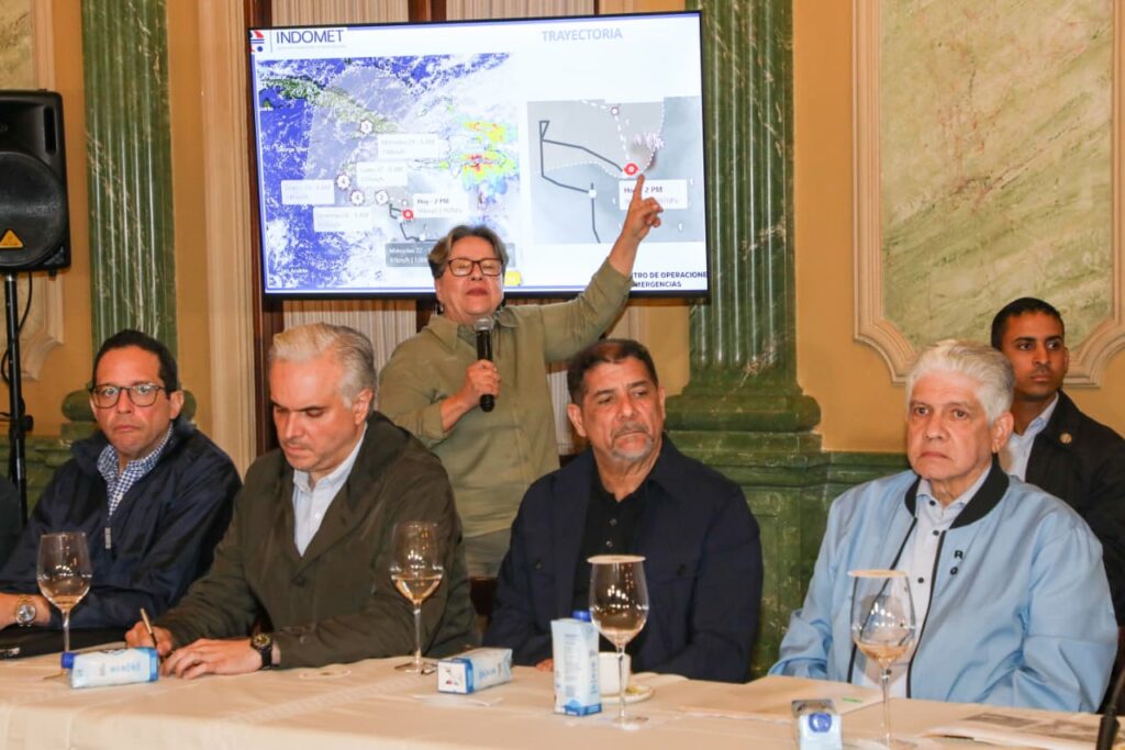 En la reunión participaron las principales autoridades de gestión de riesgos y meteorología del país. La directora del Instituto Nacional de Meteorología (Indomet), Gloria Ceballos, informó que Melissa se desplaza a unos 4 kilómetros por hora hacia el sur, aunque mantiene un comportamiento casi estacionario sobre el territorio dominicano, con una estructura cercana a la de un huracán.