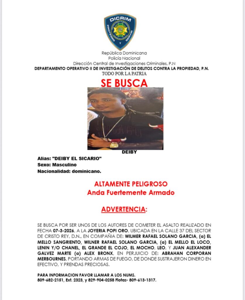 La Policía y el Ministerio Público mantienen activas las labores de búsqueda de los demás involucrados, identificados como Wilmer Rafael Solano García, alias “El Mello Sangriento”; Wilner Rafael Solano García, alias “El Mello Loco”; Deiby, conocido como “Deiby el Sicario”; Lenin; “El Mocho”; “El Grande” o “El Cojo”, y Justin Guerrero, alias “El Boricua”.